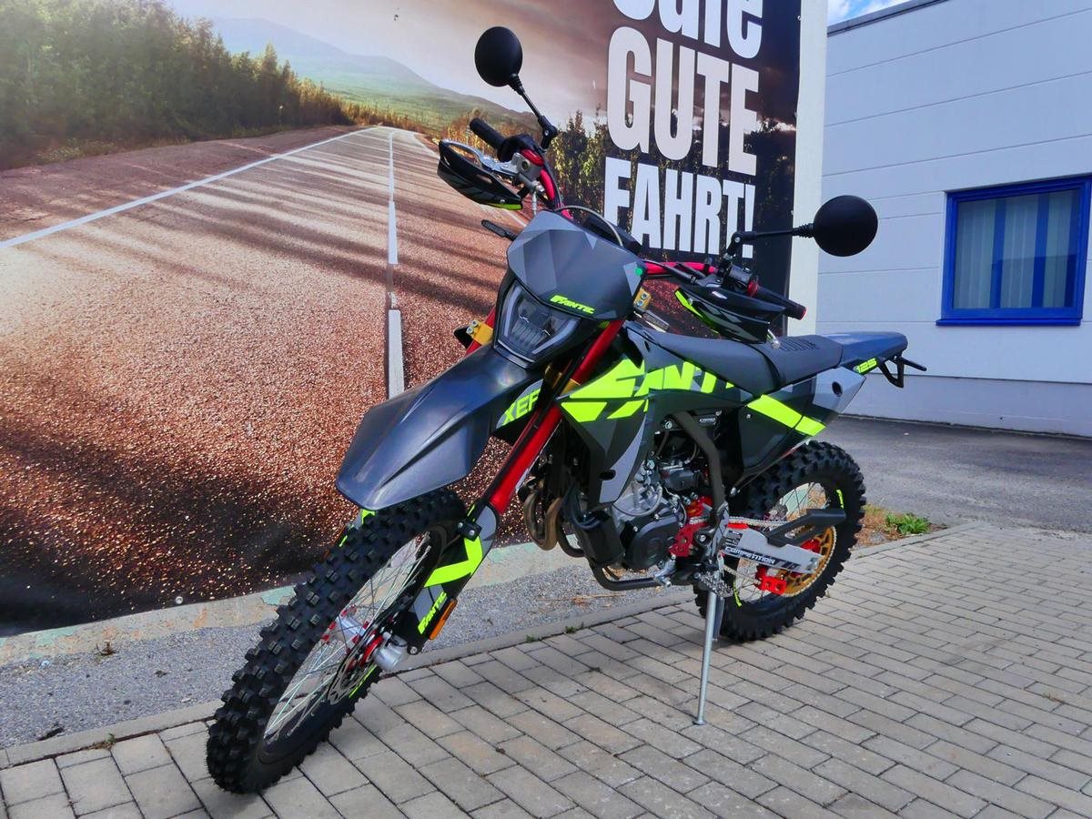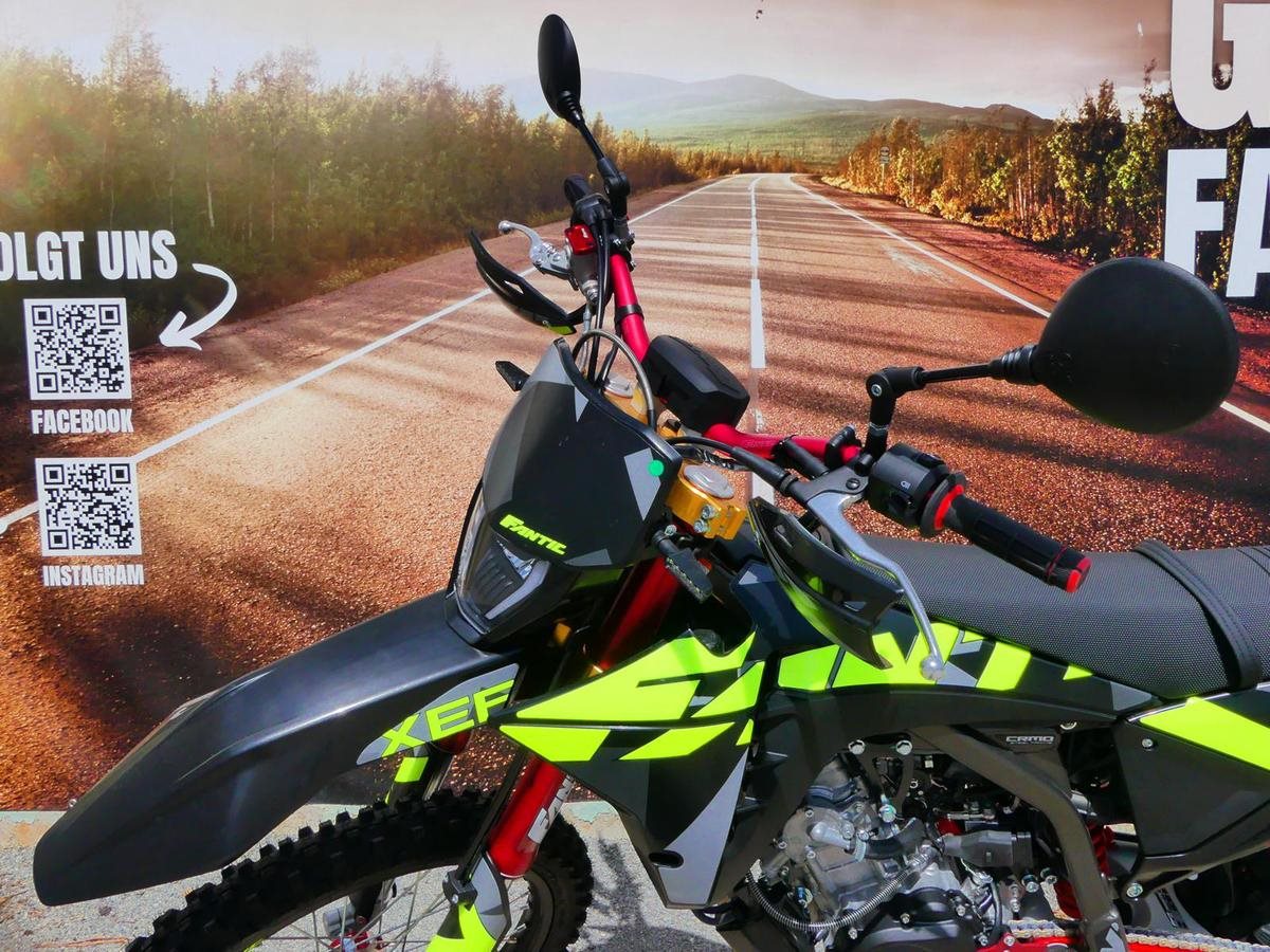 Die Fantic XEF 125 Competition ist eine Enduro-Maschine, die für anspruchsvolles Gelände konzipiert ist und auf den Rennstrecken zu Hause ist. Sie kombiniert ein leichtes Chassis mit einem leistungsstarken 125ccm Viertaktmotor und hochwertigen Komponenten für ein agiles und dennoch robustes Fahrerlebnis.